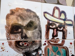 Close-up of painted tiles at Fusterlandia